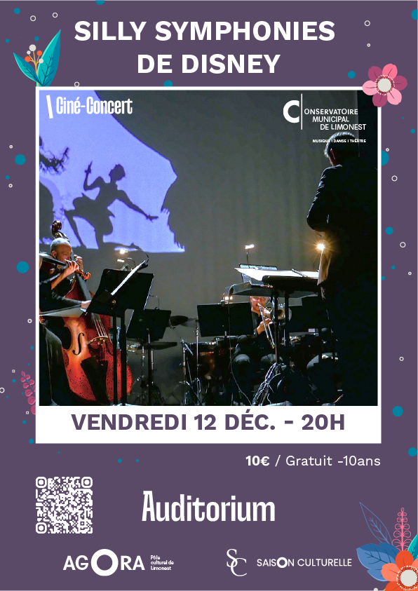 Cette année, le traditionnel concert de Noël prend une dimensioninédite et féérique. Les professeurs du Conservatoire municipal vousinvitent à un voyage musical et cinématographique autour d’unhommage à l’une des plus belles pépites du patrimoine Disney : lesSilly Symphonies.Produits entre 1929 et 1939, ces courts-métrages d’animationinventifs et poétiques ont marqué l’histoire du cinéma par leur liennovateur entre musique et image. À travers une sélection de cinq àsix films emblématiques, redécouvrez l’univers fantasque, coloré etparfois surréaliste de ces “Symphonies idiotes” qui ont inspiré desgénérations d’artistes.Pour cette occasion unique, l’orchestre des professeurs duConservatoire interprètera une création musicale originale signéeRomain Montiel (compositeur lyonnais) spécialement composéepour l’événement.