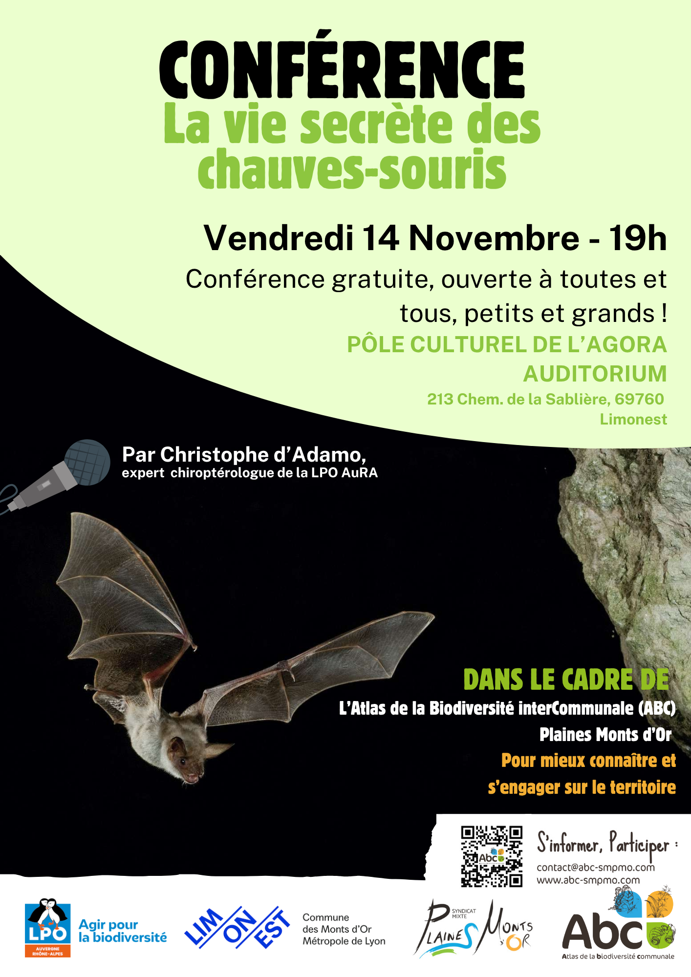 Dans le cadre de l’Atlas de biodiversité interCommunale Plaines Monts d’Or, nous vous invitons à une soirée passionnante dédiée à un animal aussi discret que fascinant : la chauve-souris.