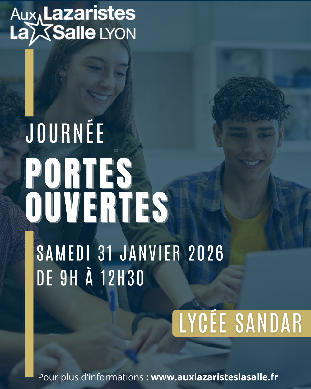 Samedi 31 janvier 2026, toute notre équipe vous accueillera de 9h00 à 12h30 pour vous faire découvrir le site du Lycée Sandar-La Salle.