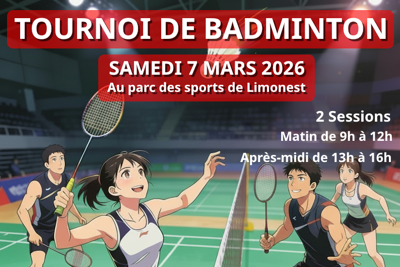 L’Apel du collège Aux Lazaristes La Salle organise au gymnase du parc des sports de Limonest un tournoi de Badminton DOUBLE ADULTE/ADO (hommes, femmes et mixte) au profit des collégiens. Le tournoi est ouvert à tous, du débutant au joueur très confirmé et s’organise sous forme de montée/descente. Sur place, vous pourrez profiter d’une buvette avec une offre de restauration .